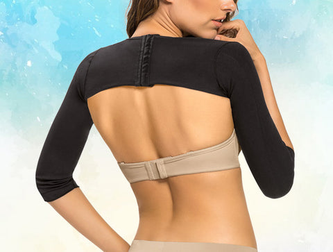 Shapewear: Many people are self-conscious about their extra arm fat. Arm shapewear will help define your arms underneath your outfit. Many arm shapewear garments come as part of a shirt that can be worn as an outfit on its own.